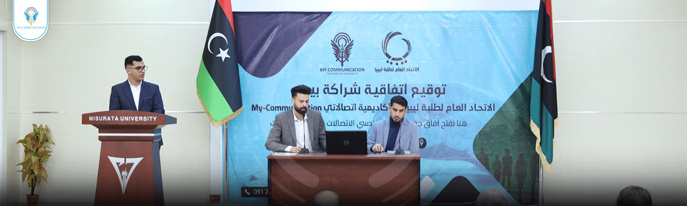 في خطوة بارزة نحو تعزيز التعليم والتدريب في مجال الاتصالات. أبرمت أكاديمية My Communication في الثامن والعشرين من فبراير عام 2023، اتفاقية تعاون مهمة مع اتحاد الطلبة. والذي يضم تحت لوائه جميع الاتحادات الطلابية في البلاد. هذه الشراكة الطموحة تهدف إلى تمكين طلاب ومهندسي الاتصالات في الجامعات الليبية من خلال تقديم برامج تدريبية نظرية وعملية متقدمة، مصممة لرفع مستويات كفاءتهم وإعدادهم لسوق العمل.